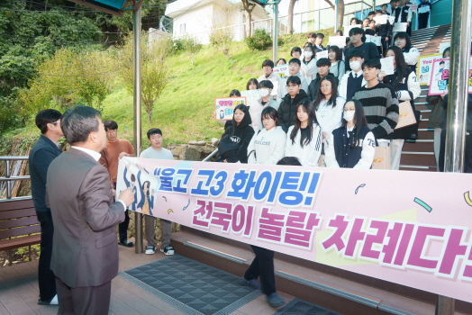 울릉군은 11월 5일, 다가오는 2026학년도 대학수학능력시험(수능)을 앞둔 울릉고등학교 3학년 학생들에게 ‘수험생 응원 키트’을 전달하며 응원했다.