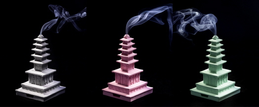 이번에 개발된 인센스 홀더는 석탑의 단정한 비례와 안정된 기단 구조를 살린 디자인으로, 향 스틱을 꽂으면 은은한 연기가 탑의 상륜부에서 피어오르는 장면을 연출하며, 석탑의 질감과 색감을 현대적으로 해석한 회색, 분홍색, 연두색 세 가지의 컬러로 출시됐다.