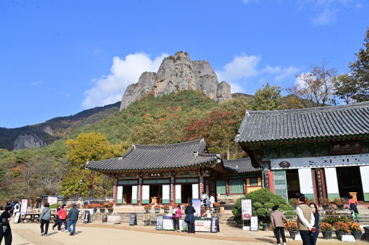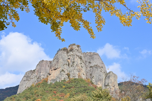 청송 주왕산이 붉고 노란 단풍으로 물들며