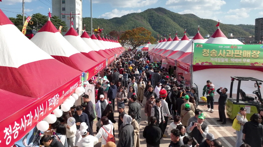 청송군에서 지난 10월 29일부터 11월 2일까지 열린 '제19회 청송사과축제'에서 지역민과 방문객의 뜨거운 호응 속에 사과 판매부스 총 매출액이 약 10억 원 이상을 기록하며 역대 최대 판매 실적을 달성한 것으로 청송군이 10일 발표했다.