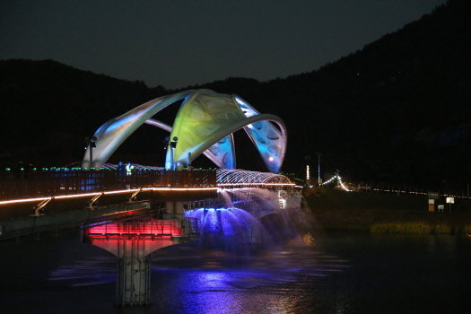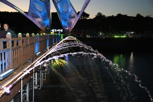 상주시를 대표하는 관광명소 중 하나인 ‘경천섬 범월교’의 경관분수 제작·설치를 마무리돼 10일 경천섬 주차장 일원에서 통수식을 개최했다.