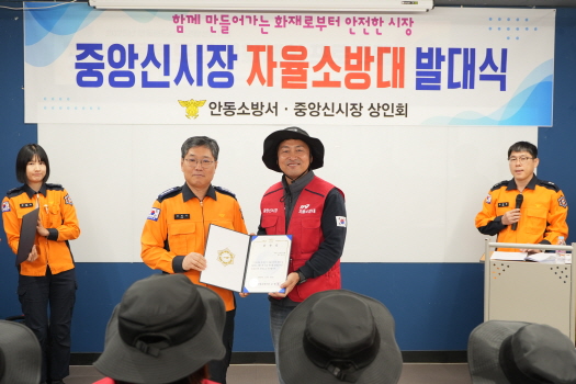 안동소방서는 25일 안동중앙신시장 특산물카페 2층에서 ‘전통시장 자율소방대 발대식’을 개최하며 지역 전통시장의 안전 역량 강화를 위한 본격적인 첫걸음을 내디뎠다.