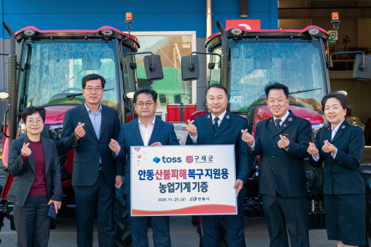 장철웅 안동시 부시장은 “산불피해로 영농 활동이 막막한 농업인들에게 이번 기증이 큰 보탬이 될 것”이라며 “안동시 농업인을 위해 농기계를 지원해 주신 토스와 구세군 한국군국에 깊은 감사를 드린다”고 전했다.