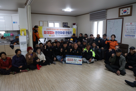 주요 내용으로는 ▲마을이장 명예소방관 위촉식 ▲소방시설(마을 공동 소화기함 21개·주택용 소방시설 120Set) 기증식 ▲소화기 사용법 교육 ▲화재없는 안전마을 현판식 ▲주택용 소방시설 방문 설치 등이다.