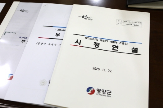 오도창 영양군수는 2025년 11월 27일(목) 영양군의회 제310회 정례회에 참석하여 “ 2026년도의 재정운영방향은 지속가능한 재정으로 소멸위기를 극복하고자 하며 농업ㆍ축산ㆍ산림분야에 437억원을, 사회복지ㆍ보건분야에 29억원을 늘려 편성함으로서 군민의 삶과 직결된 분야에 선택과 집중을 하였다”고 강조했다.