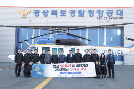 경상북도경찰청(청장 : 오부명 치안감) 항공대가 1975년 12월 1일 창설 이후 ‘50년 무사고 비행기록’이라는 금자탑을 세웠다.