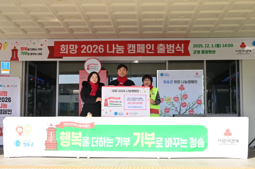 경북사회복지공동모금회가 주최하고 청송군이 후원하는 이번 캠페인은 ‘행복을 더하는 기부, 기부로 바꾸는 청송’을 슬로건으로 12월 1일부터 내년 1월 31일까지 62일간 진행된다.