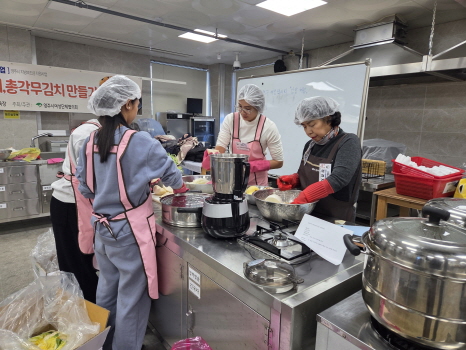 이번 행사는 ‘2025 시민이 행복한 지역봉사사업’의 일환으로 마련됐으며, 다양한 나라에서 이주한 결혼이민여성 15명이 참여해 우리나라의 대표 겨울 음식인 백김치와 총각김치를 직접 담가보며 서로 소통하는 시간을 가졌다.