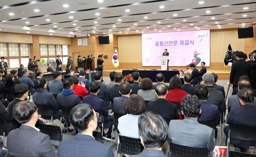 이날 체결식에는 이철우 경상북도지사와 김두겸 울산광역시장, 조현일 경산시장, 조지연 국회의원, 지역 기업인 대표 등 100여 명이 참석한 가운데 지역의 오랜 숙원사업인 ‘경산~울산 고속도로’ 건설의 국가 계획 반영 등 결의를 다졌다.