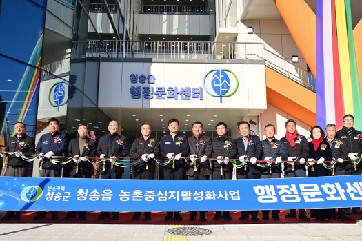 청송군(군수 윤경희)은 18일 ‘청송읍농촌중심지활성화사업’의 일환으로 조성한 ‘청송읍 행정문화센터’의 준공식을 개최했다.