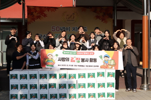 봉사활동에 참여한 학생은 “서툰 솜씨지만 친구들과 함께 정성을 다해 만든 김치로 어르신들에게 조금이나마 도움을 드릴 수 있어 뿌듯하다”고 소감을 밝혔다.