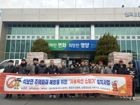영양군 석보면 석맥 청년회(회장 서장훈)에서 지난 21일 석보면 6개 마을 내 화재 취약계층 400가구를 대상으로 화재 발생 시 신속한 대응을 위해 영양주민풍력에서 자동확산 소화기를 기부받아, 청년회에서 직접 설치에 나서 귀감이 되고 있다.