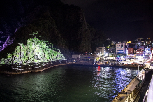 해당 암반은 가로 약 60m, 높이 약 40m 규모로, 울릉도의 화산암반과 그 위에 어우러진 수목의 질감과 형태를 살린 영상이 연출돼 자연경관과 조화를 이루는 입체적인 야간 경관을 선보인다. 관람 장소는 여객선 터미널 2층 야외 공간으로, 바닷바람을 느끼며 영상을 감상할 수 있다.