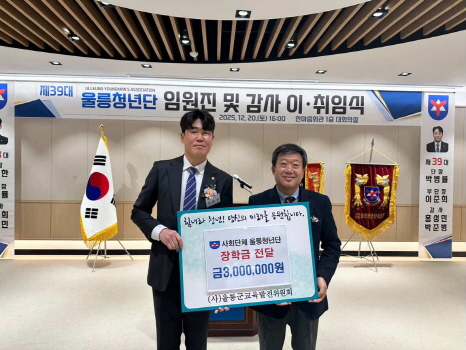 이에 남한권 이사는 “지역 학생들을 위해 따뜻한 나눔을 실천해 주신 울릉청년단 여러분께 깊이 감사드린다”며 “기탁해 주신 장학금은 지역 인재 양성을 위해 소중히 사용하겠다”고 고마움을 전했다.