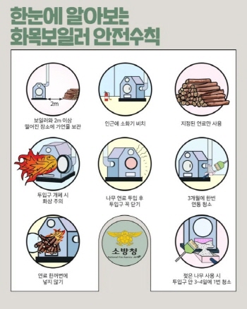이에 청송소방서는 화목보일러 사용 가구를 대상으로 ▲보일러 주변 2m 이내 가연물 방치 금지 ▲연통 내부 주기적 청소 ▲연료의 과도한 투입 금지 및 투입구 폐쇄 확인 ▲보일러실 소화기 비치 및 자동확산소화기 설치 ▲재 처리 시 불씨 완진 후 안전 장소 폐기 등 안전수칙을 적극 홍보하고 있다.