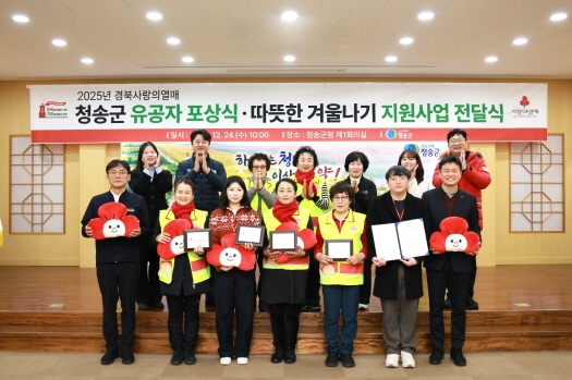 청송군(군수 윤경희)은 지난 24일 군청 제1회의실에서 경북사회복지공동모금회(회장 전우헌) 주관으로 ‘2025년 따뜻한 겨울나기 전달식 및 사랑의열매 유공자 포상식’을 개최했다.