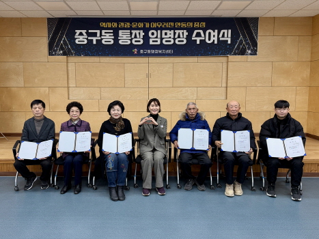 신숙희 중구동 통장협의회장은 “새롭게 임명된 통장님들을 진심으로 환영하며, 특히 젊은 세대 통장의 참여로 통장 조직에 새로운 활력이 더해질 것으로 기대한다”고 말했다.