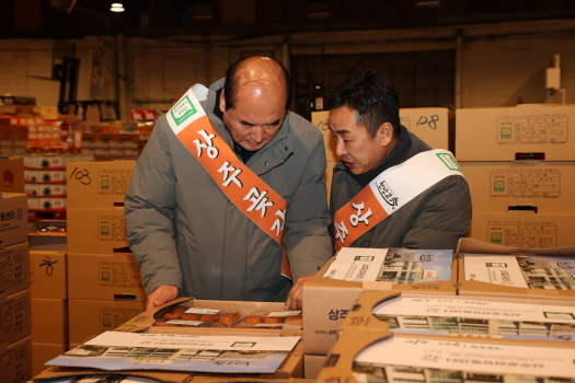 상주곶감유통센터는 2025.12. 29.(월) 03:00시 서울 가락동 농산물도매시장에서 상주곶감의 도매시장 계통 출하 및 상주곶감을 홍보하는 전시판매 홍보행사를 가졌다.