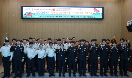 청송소방서는 2026년 1월 2일 오전 10시 30분, 소방서 3층 대회의실에서 희망찬 병오년(丙午年) 새해를 맞이하는 시무식 행사를 가졌다.