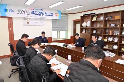 청송군(군수 윤경희)은 1월 19일부터 21일까지 3일간 군청 소회의실에서 ‘2026년도 주요업무 보고회’를 개최한다.