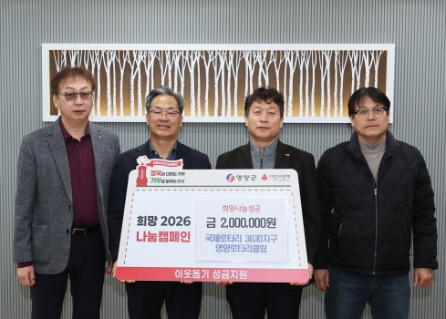 국제로타리 3630지구 영양로타리클럽(회장 황영호)은 1월 26일 「희망2026나눔캠페인」에 동참해 지역의 어려운 이웃을 돕기 위한 성금 200만원을 영양군청에 전달했다.