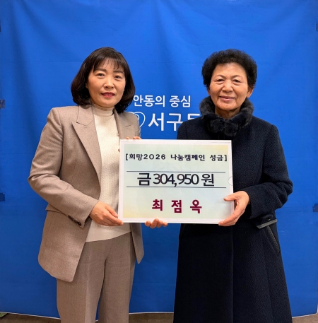 안동시 서구동에 거주하는 최점옥(76세) 어르신은 어려운 이웃과 함께 나누고자 1월 26일(월) 서구동행정복지센터를 방문해 3,000여 개의 빈 병을 수거해 모은 성금 304,950원을 희망2026 나눔캠페인 성금으로 기탁해 귀감이 되고 있다.