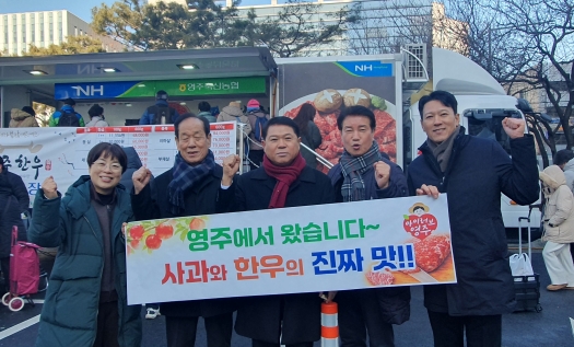 영주시는 지난 3일 서울 강남구청 주차장에서 열린 ‘2026 설맞이 강남구 직거래 장터’에 참가해 영주한우와 영주사과를 선보이며 서울 시민들로부터 큰 관심을 받았다.