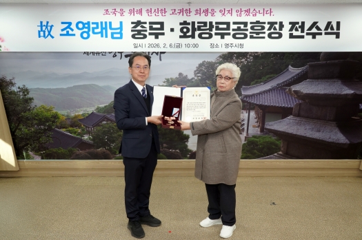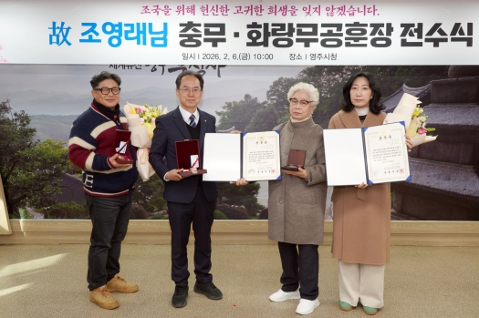 영주시는 6일, 6·25전쟁 참전유공자 고(故) 조영래 상병의 유족에게 충무무공훈장과 화랑무공훈장을 전수하며, 전쟁의 혼란 속에서 전달되지 못했던 국가의 영예를 77년 만에 되돌려주었다.