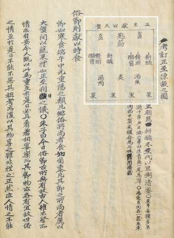 『주자가례』에도 차례는 ‘제례편’이 아니라 일상의 예에 포함되어 있으며, 별도의 용어를 사용하지 않고 정초에 행하는 사당 참배의 일종으로 설명하고 있다.