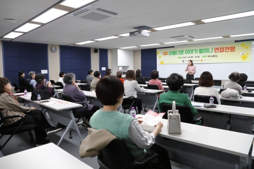 한국국학진흥원(원장 정종섭)은 문화체육관광부(장관 최휘영) 및 17개 광역자치단체와 함께 추진하는 `제18기 아름다운 이야기할머니' 사업의 서류 전형 합격자를 발표하고, 23일(월) 서울을 시작으로 본격적인 면접 전형을 실시한다.