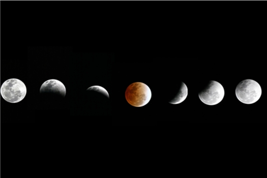 개기월식은 달이 지구의 그림자에 가려 어둡고 붉게 변하는 천문 현상으로 보름달이 뜰 때에만 일어난다.