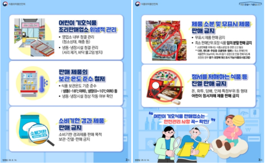 이번 점검은 2월 23일부터 3월 6일까지 2주간 진행되며, 식품의약품안전처에서 지정한 어린이기호식품 조리․판매업소 96개소를 대상으로 추진된다. 어린이기호식품전담관리원 등 4개 반 8명으로 구성된 점검반이 위생관리 전반을 집중 점검할 예정이다.