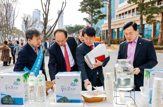 울릉군은 26일 서울 국회소통관 앞에서 울릉도 우산고로쇠 수액 홍보행사를 개최했다.