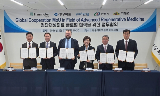 안동시는 경상북도, 포항시, 의성군과 함께 2월 27일(금) 환동해지역본부(동부청사) 9층 대회의실에서 독일 프라운호퍼 IBMT 연구소와 ‘첨단재생의료산업 육성을 위한 업무협약 (MOU)’을 체결했다.