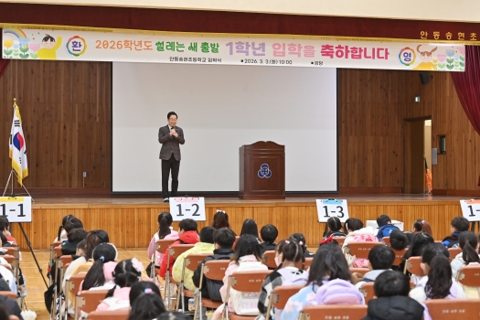 이어 안동송현초등학교에서 열린 2026학년도 입학식에는 신입생 122명과 6학년 재학생 159명을 비롯해 학부모 등 450여 명이 참석해 뜻깊은 시간을 가졌다.