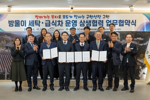이번 협약은 영주댐 주변지역 주민지원사업의 일환으로, 정기적인 방문 이불 세탁과 식사 제공 서비스를 통해 고령·홀몸 거주민의 생활 위생환경을 개선하고 결식 및 영양결핍을 예방하는 등 생활밀착형 복지서비스를 확대하기 위해 마련됐다.
