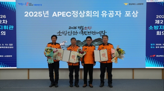 경상북도 소방본부는 지난 3월 13일 경주 화백컨벤션센터에서 열린 제2차 소방지휘관 회의에서 ‘2025년 경주 에이펙(APEC) 정상회의’ 관련 안전지원과 성공적인 행사 개최에 기여한 유공자에 대한 정부포상 전수식과 2025년 소방행정종합평가 시상식을 개최했다.