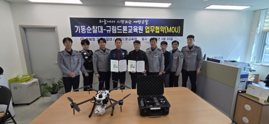 경북청 기동순찰대는 지난 3월 20일 기동순찰대 사무실에서 기동순찰대장(경정 정문용)과 구미 규림드론교육원(원장 황선도)이 참석한 가운데 ‘드론을 활용한 범죄예방 공중순찰 협력체계 구축 업무협약(MOU)’을 체결했다.