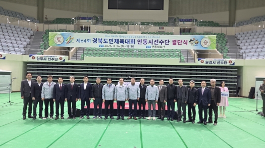 안동시체육회는 3월 26일 안동체육관 주경기장에서 ‘제64회 경북도민체육대회’에 참가하는 시 선수단의 출전을 공식화하고 필승의 의지를 다지는 결단식을 개최했다.
