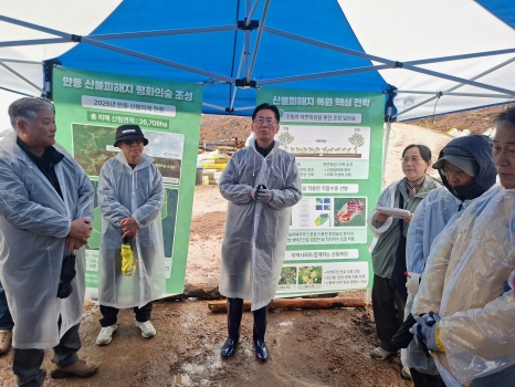 황명석 경상북도지사 권한대행은 식목일을 하루 앞둔 4월 4일, 안동시 풍천면 어담리 산불 피해 현장에서 열린 (사)평화의 숲 주최 산불 피해지 복원 나무 심기 행사에 참석하고 지역 현안을 건의했다.