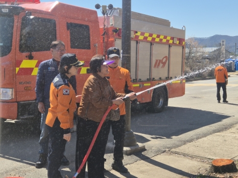 이정희 청송소방서장은 “이번 신규 비상소화장치 사용법 교육에 참석하신 주민분들은 확실하게 사용법을 익혀, 필요한 순간에 우리 마을을 지킬 수 있도록 당부”한다고 강조하며, 불법 주.정차 금지 등 장애 요인 제거의 중요성에 대한 홍보도 함께 진행했다.