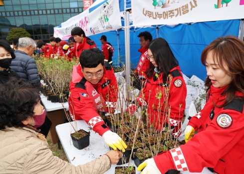 영양군은 이날 장미, 목수국, 산철쭉 등 수려한 경관 조성에 적합한 5종의 묘목 총 10,500본을 준비하였으며, 선착순 방문 군민에게 1인당 1~3본을 무료로 배부했다.