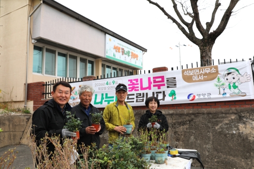석보면에서는 이날 목수국, 장미, 차수국, 산철쭉 1,200본을 주민들에게 배부했다.