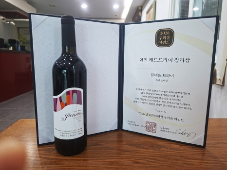 영주시 지역 와이너리인 ‘쥬네뜨 와이너리(대표 김향순)’가 ‘2026 K-푸드 발효문화대전 우리술 어워즈’에서 한국 와인 부문 레드스위트 우수상과 레드드라이 장려상을 수상했다.