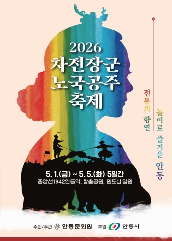 안동문화원이 주최․주관하는 안동의 대표 민속 축제 ‘2026 차전장군노국공주축제’가 오는 5월 1일부터 5일까지 닷새간 중앙선1942안동역, 원도심, 탈춤공원 일원에서 개최된다.