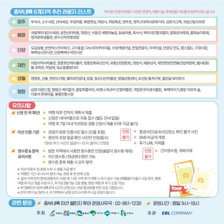기타 자세한 사항은 중부내륙 미션 챌린지 투어 운영사무국(☎02-861-1230)으로 문의하면 된다.