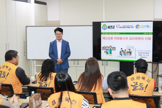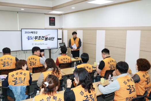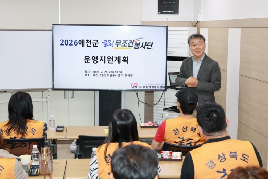 (사)예천군종합자원봉사센터는 28일 오전, 자원봉사센터 교육장에서 ‘2026 예천 출동! 무조건 재난지킴이 봉사단’ 20여 명을 대상으로 연간 활동 계획 공유 및 재난 심리 회복 역량 강화 교육을 실시했다.