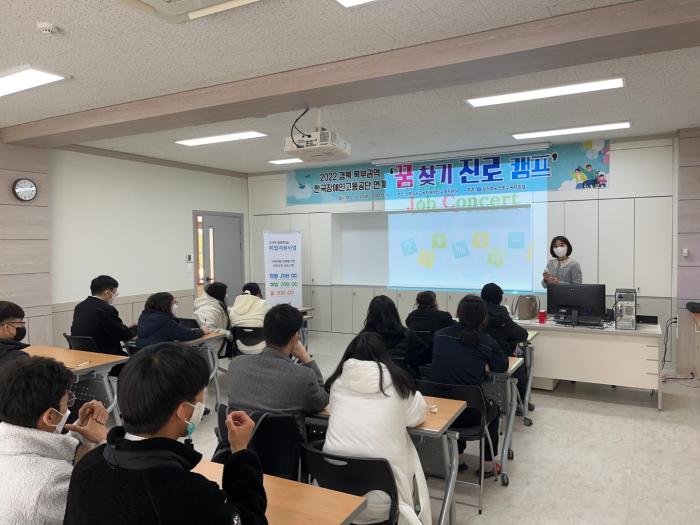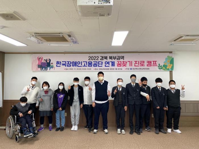 경상북도안동교육지원청(교육장 이순호)은 11월 23일(수)에 경북 북부권역 (안동·문경·청송·영양·예천)고등학교 특수교육대상학생을 대상으로 안동교육지원청 희망관과 안동특수교육지원센터 교육지원실에서『2022학년도 경북 북부권역 한국 장애인고용공단 연계 꿈 찾기 진로캠프』를 운영했다.
