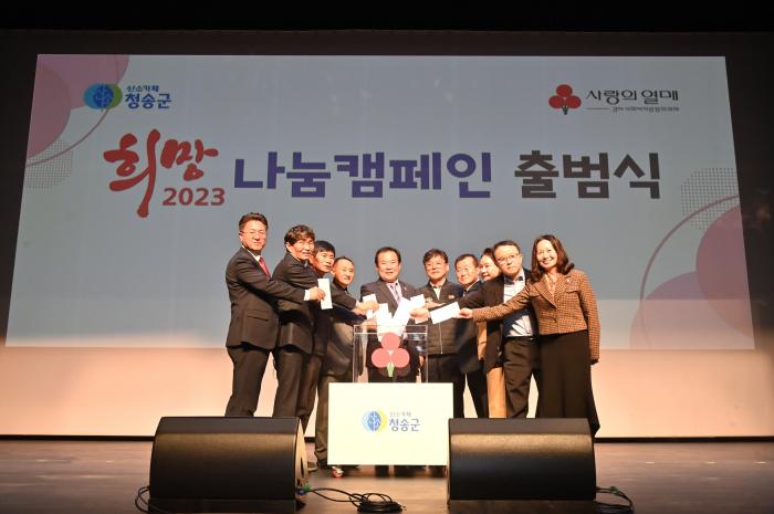 청송군은 경북사회복지공동모금회와 함께 지난 12월 2일 청송문화예술회관 대공연장에서 ‘희망2023 나눔캠페인’ 출범식을 가졌다.