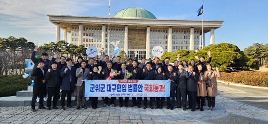 군위군의 대구시 편입 법률안인『경상북도와 대구광역시 간 관할구역 변경에 관한 법률』(이하 법률안)이 8일 국회 본회의를 통과하면서 '군위군의 대구시 편입이 확정'됐다.